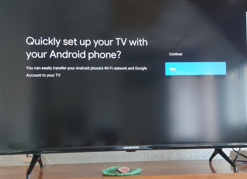 Android TV -ominaisuuden sisältävä televisio aloittaa käyttöönoton iloisen reippaasti pyytämällä uuden telkkarin omistajaa luovuttamaan puhelimestaan tiedot televisioon. Kyllä, puhelimeen talletettu data. Taka-ajatuksena lienee siirtää puhelimen henkilökohtainen data televisiosta Googlen tietokantaan, jossa puhelimen omistajan tiedot sitten yhdistetään kaikkeen aiemmin samasta ihmisestä kerättyyn tietoon ja lisätään siihen uuden television tiedot. Googlella on sen jälkeen varma tieto television omistajan henkilöllisyydestä. Tapansa mukaan tietosuojaniuhottaja kehottaa kieltäytymään puhelimen tietojen luovutuksesta. Vastaavia pyyntöjä television käyttöönoton aikana tulee useita: